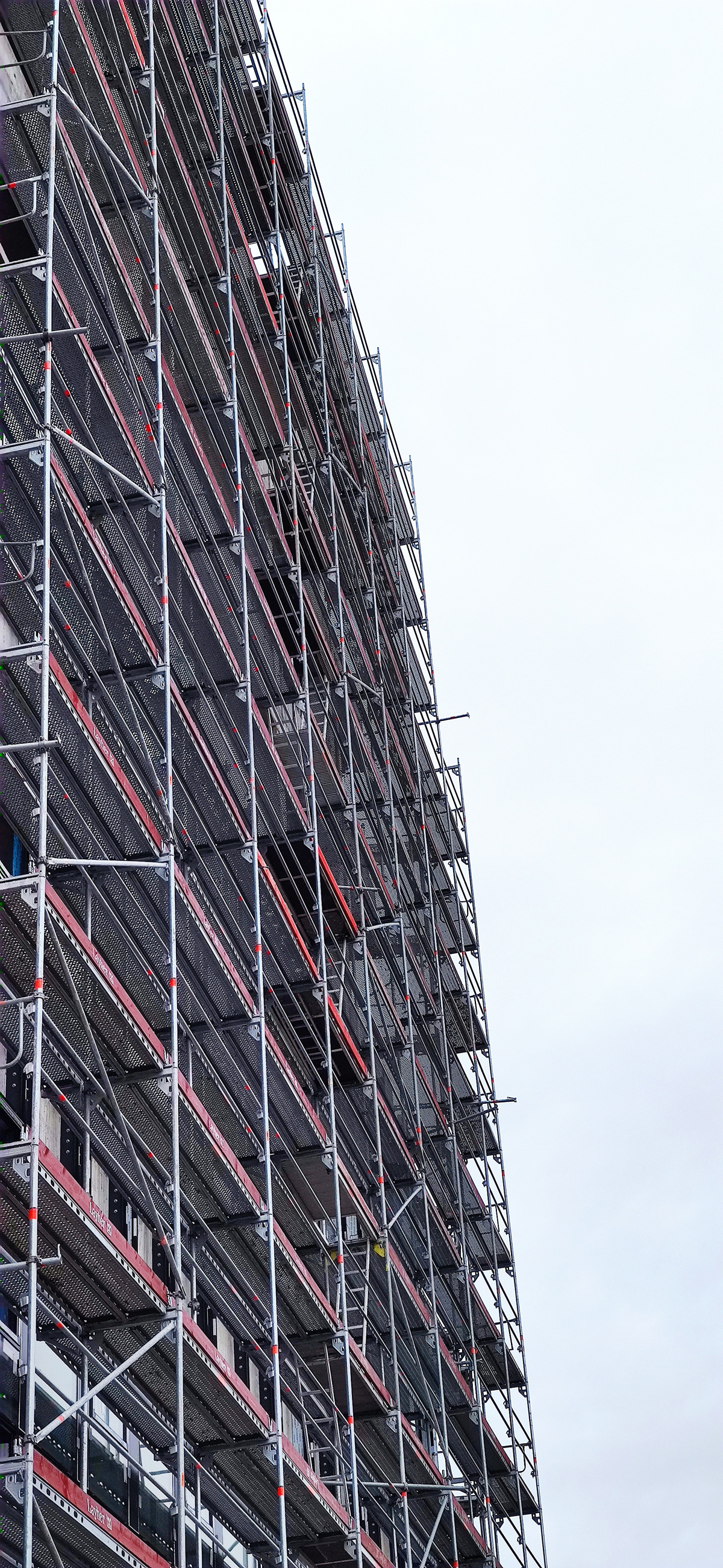 Homlokzati állványok esetében fontos szempont, hogy az állványzat nagy teherbírású, tartós és biztonságos legyen. Ezek mind egyesülnek a Layher homlokzati állványrendszereiben.